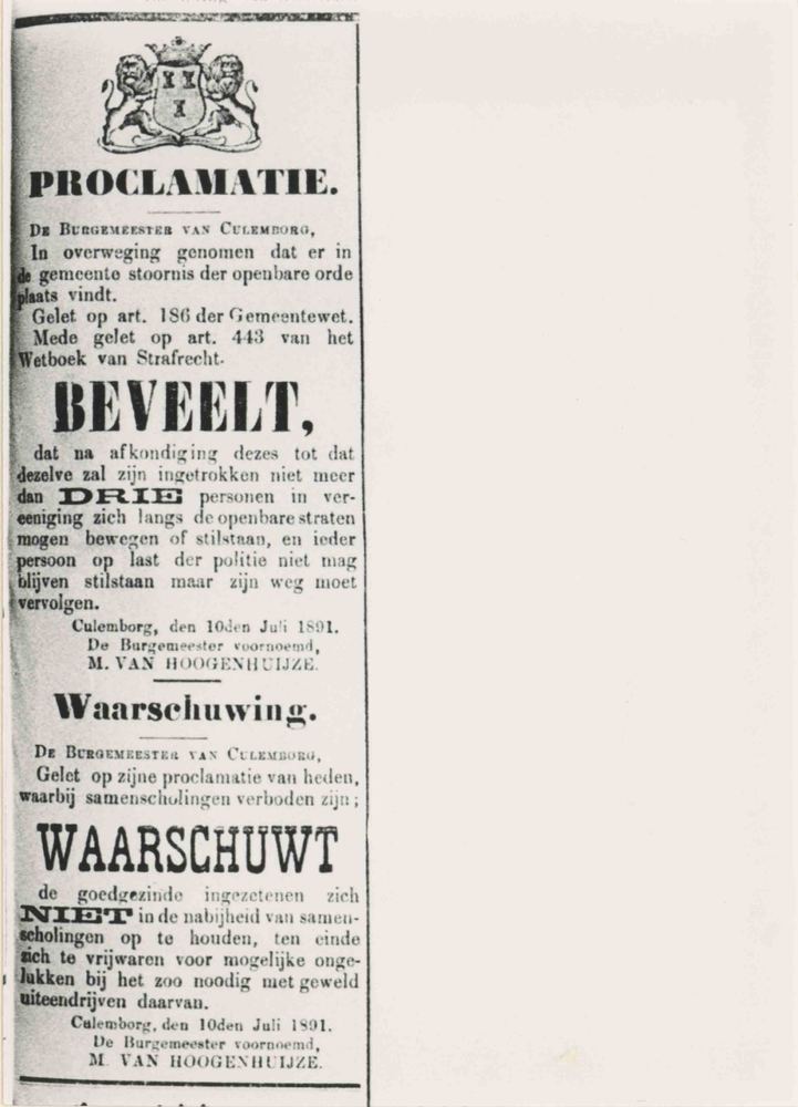 Foto, voorstellende proclamatie tegen verstoring ope...