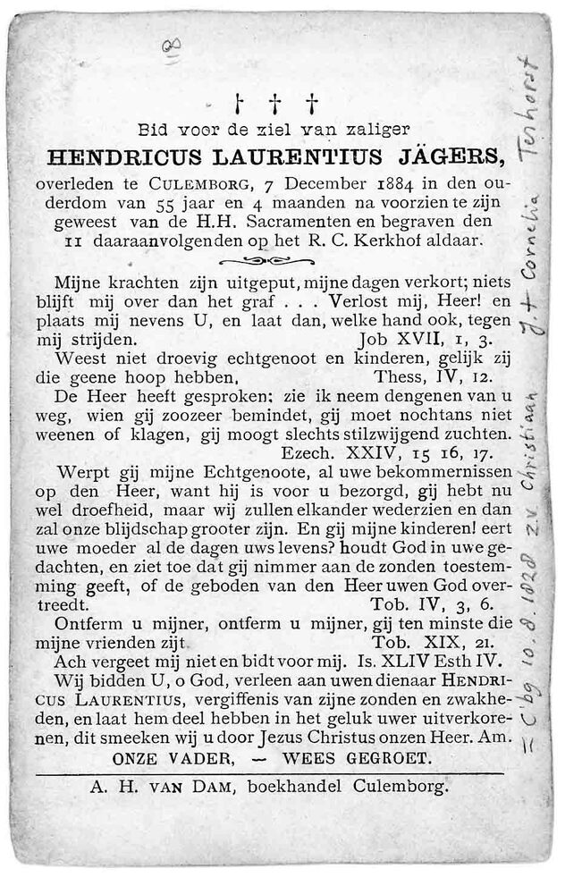 bidprent voor Hendricus Laurentius Jägers. Geboren 1...