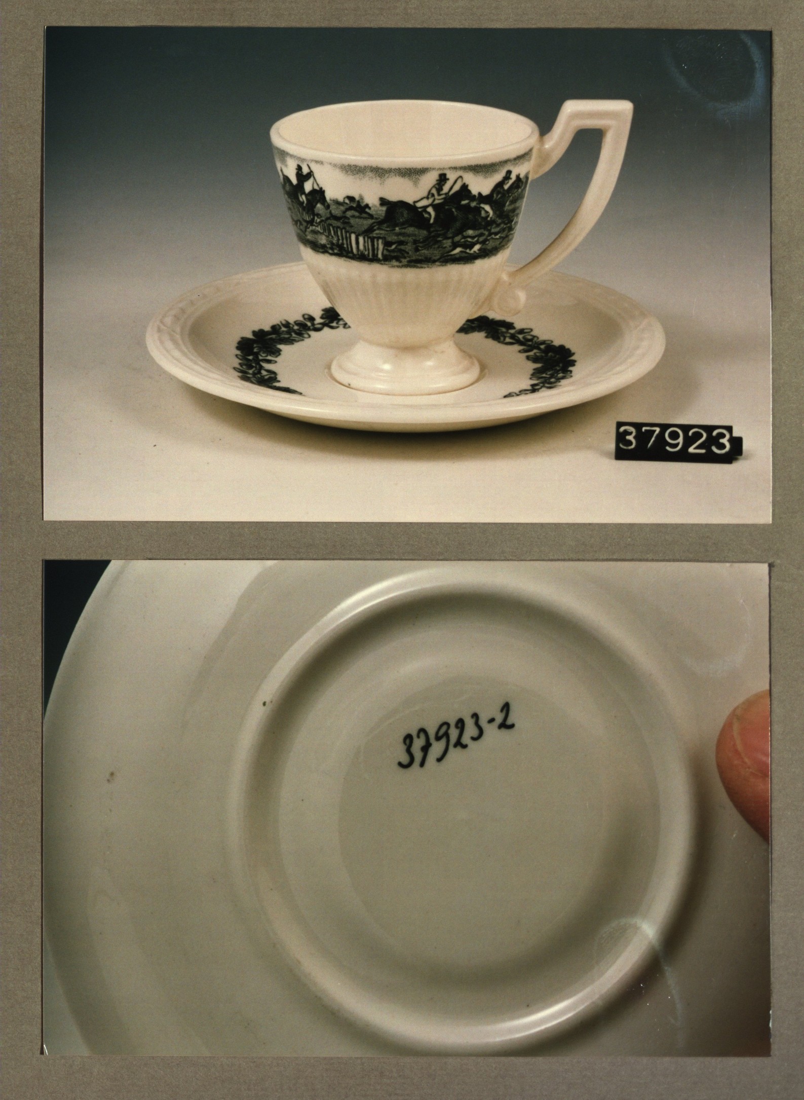 Kop en schotel, model Recamier met decor Jachttafereel