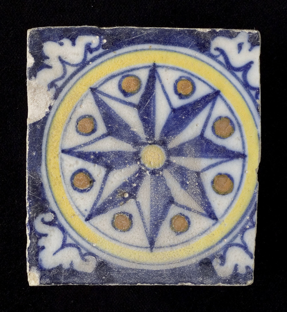 Tableautegel van keramiek, tinglazuur, voorstellende...