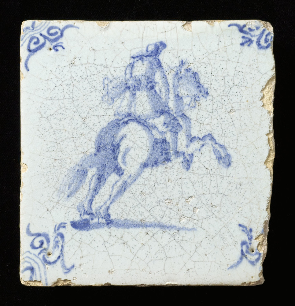 Tegel in tinglazuur, voorstellende ruiter gemaakt in...