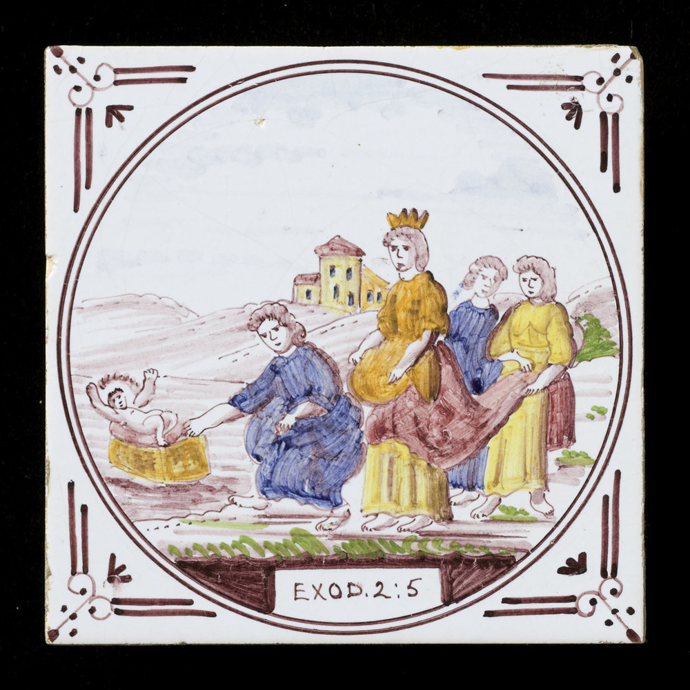Tegel van keramiek met tinglazuur, voorstellende: Mo...