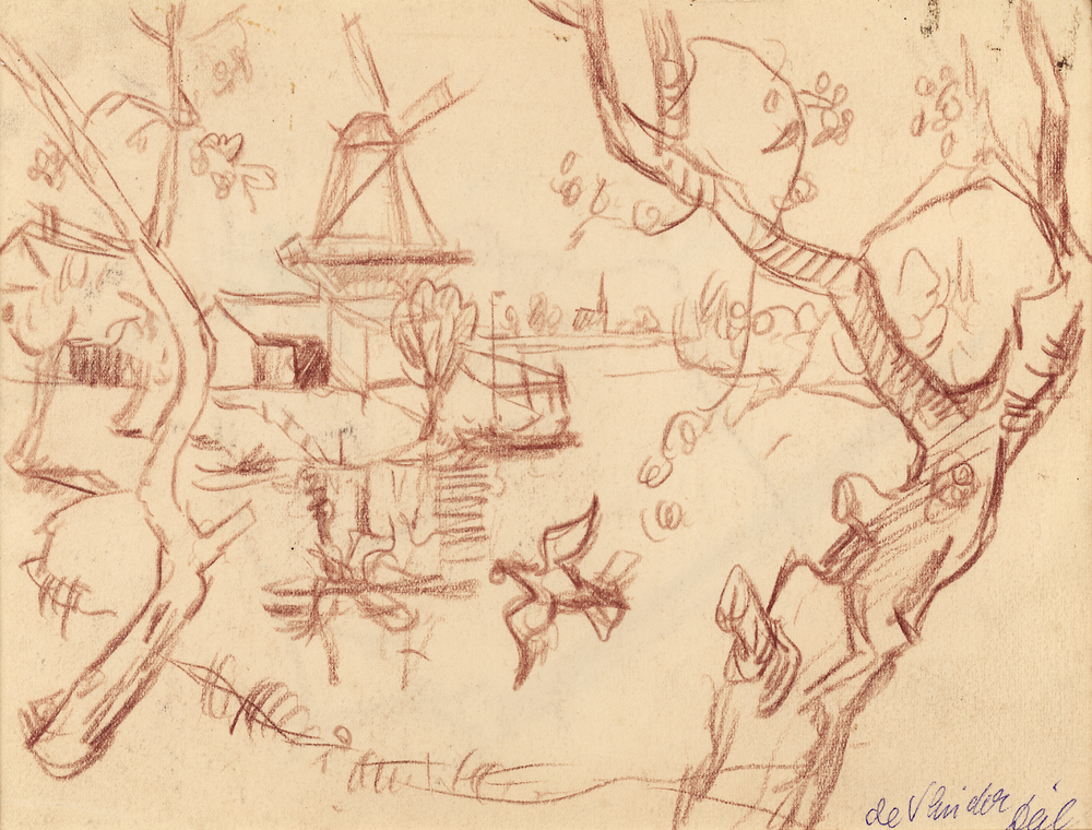 Tekening, voorstellende molen "de Vlinder" aan de Li...