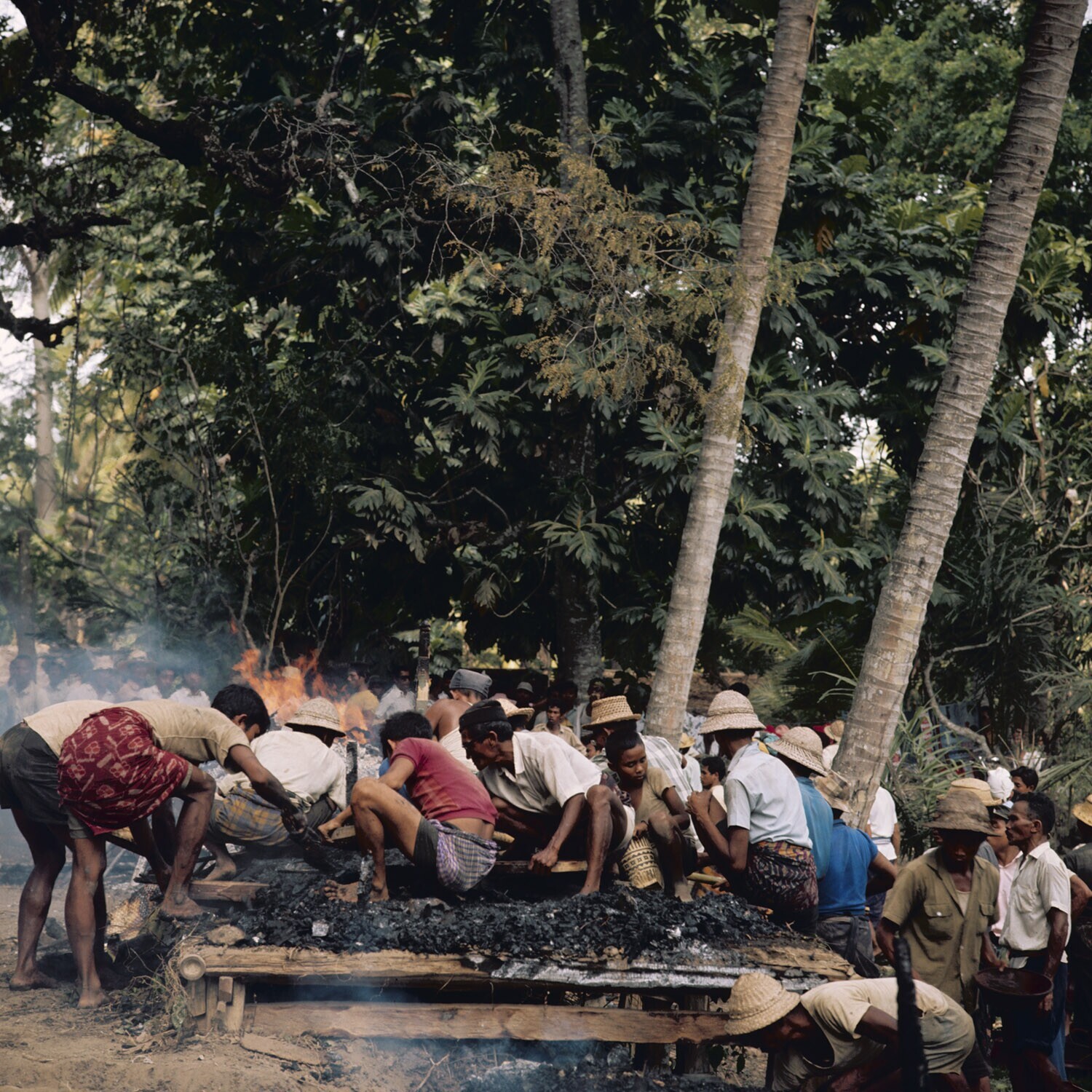 Burning of a bull-like coffin during a cremation cer...