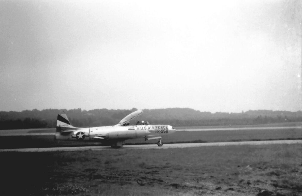 Lockheed T-33 0-34958 USAF 32 FIS op de rolbaan.