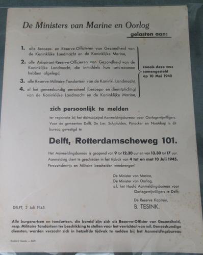 Oproepingsaffiche, “De ministers van Marine en Oorlo...