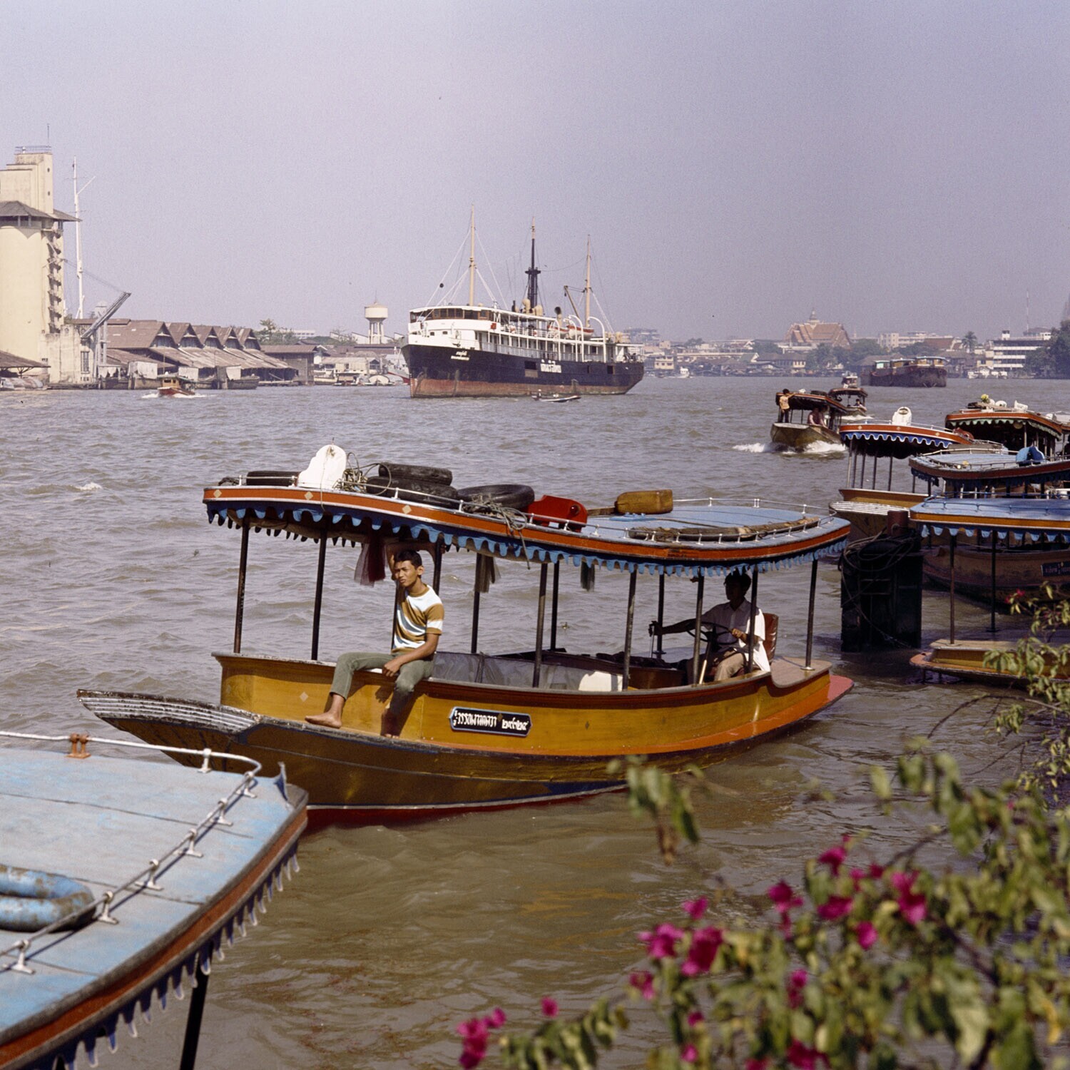 In de haven van Bangkok De Chao Phya rivier