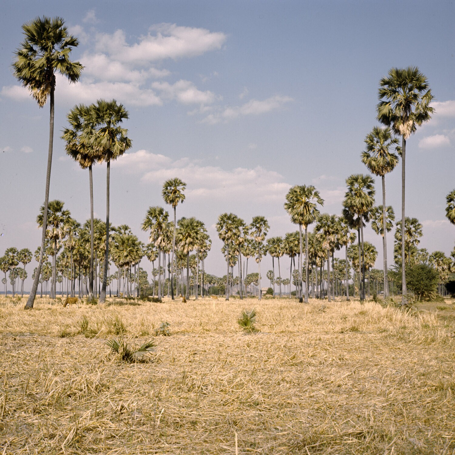 Lontaroalmen(suiker) langs een geoogst rijstveld Cen...