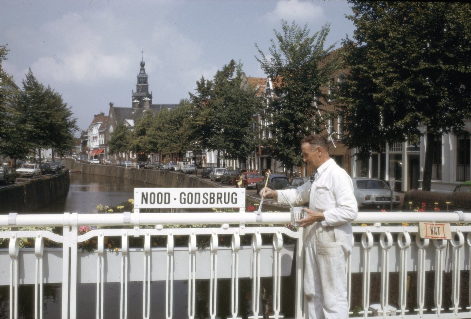 Brugleuning wordt geverfd