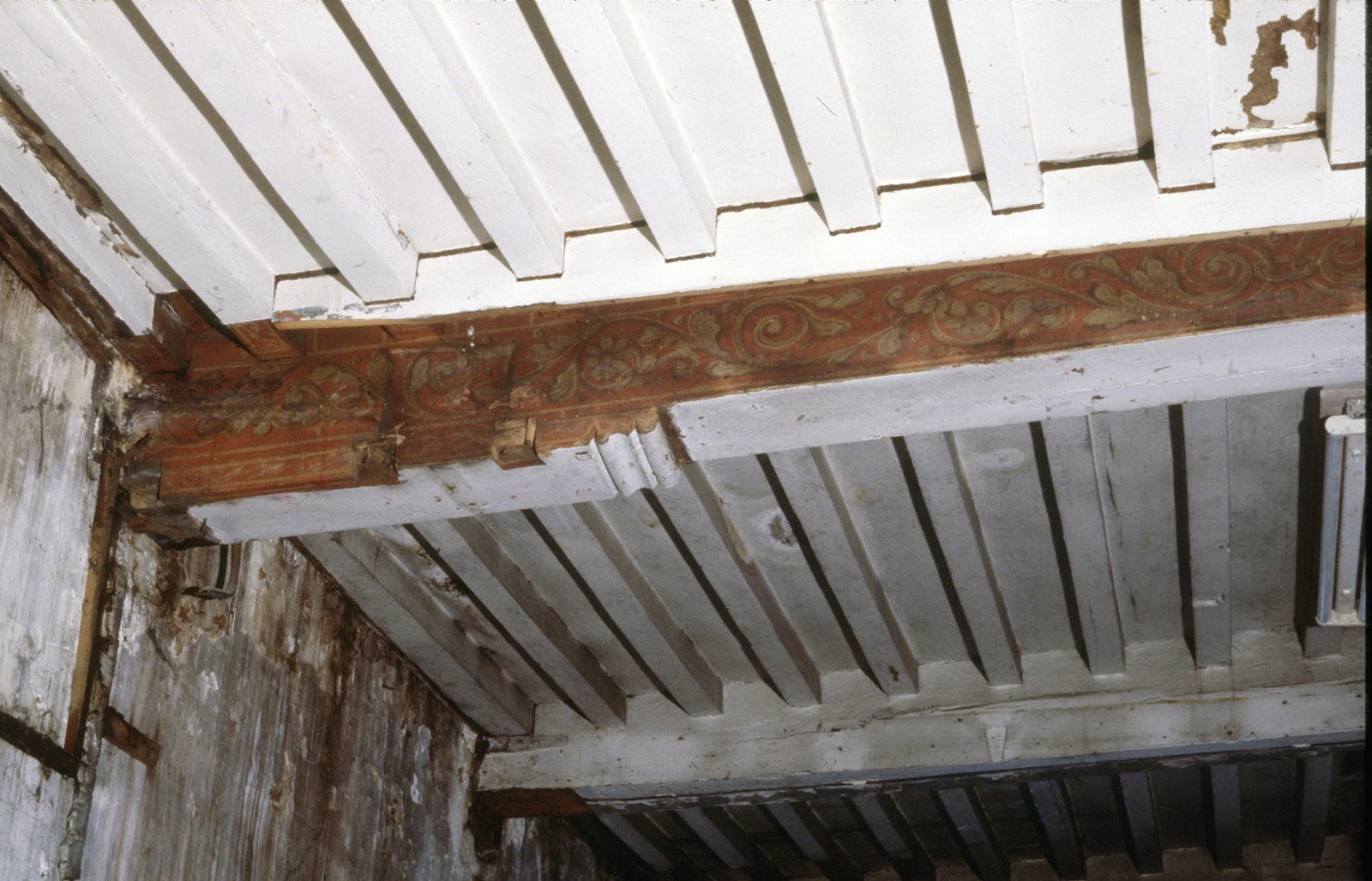 Interieur,beschilderde moerbalk