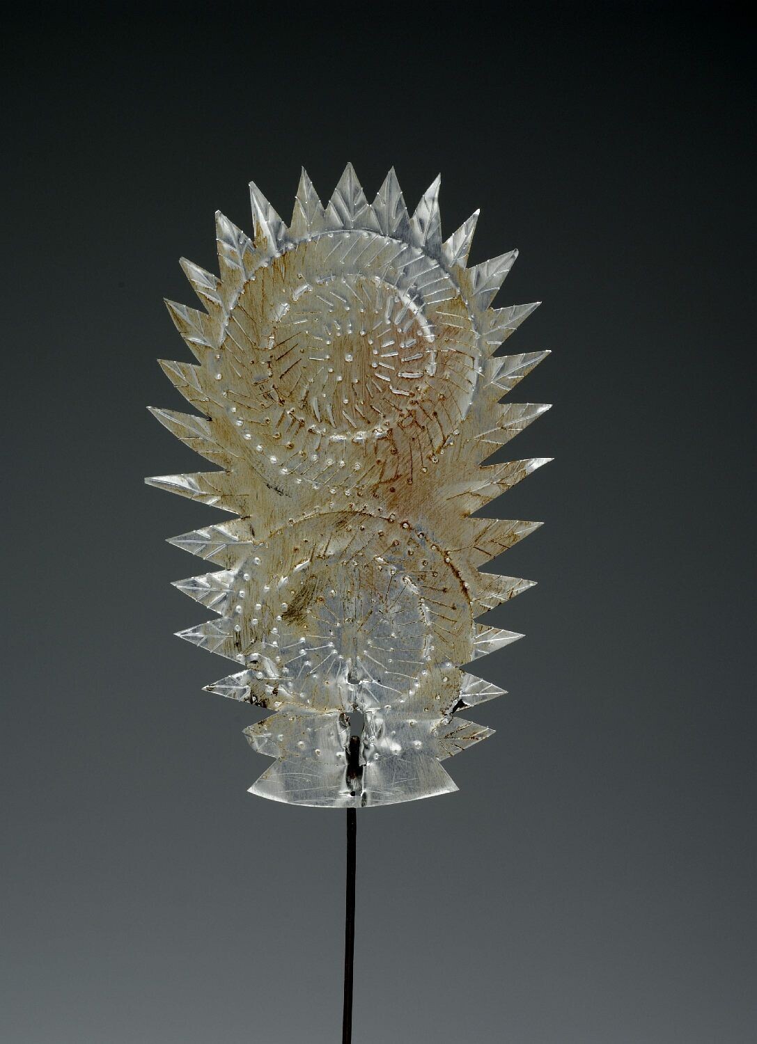 Blikken kledingspeld, zogenaamde zilveren bloem, ged...