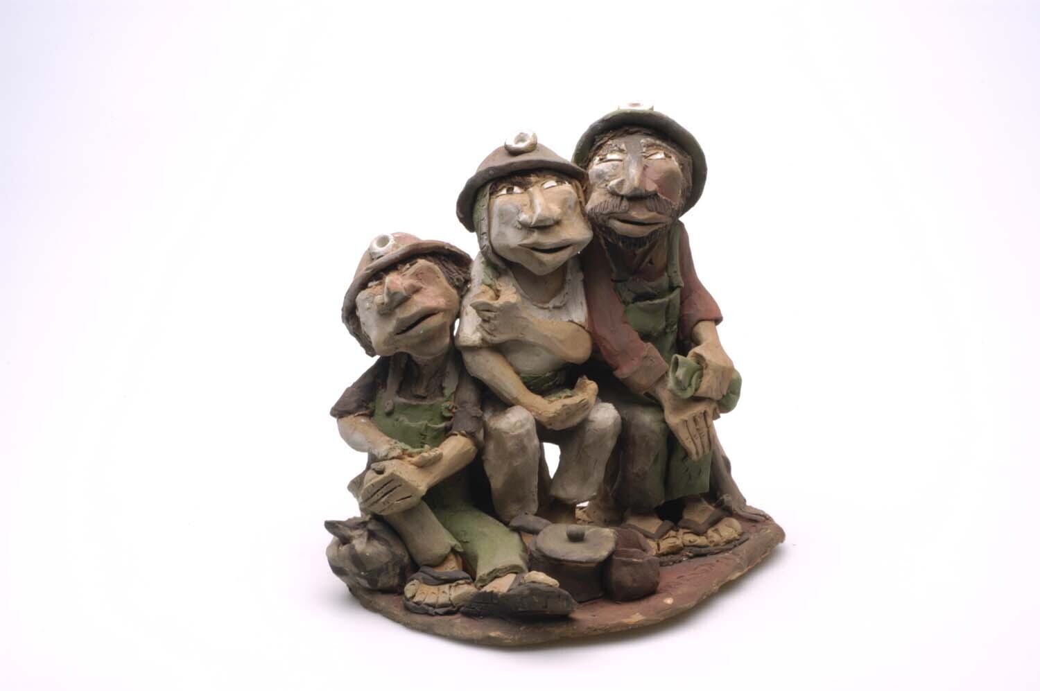 Beschilderd aardewerken beeld van drie uitrustende e...