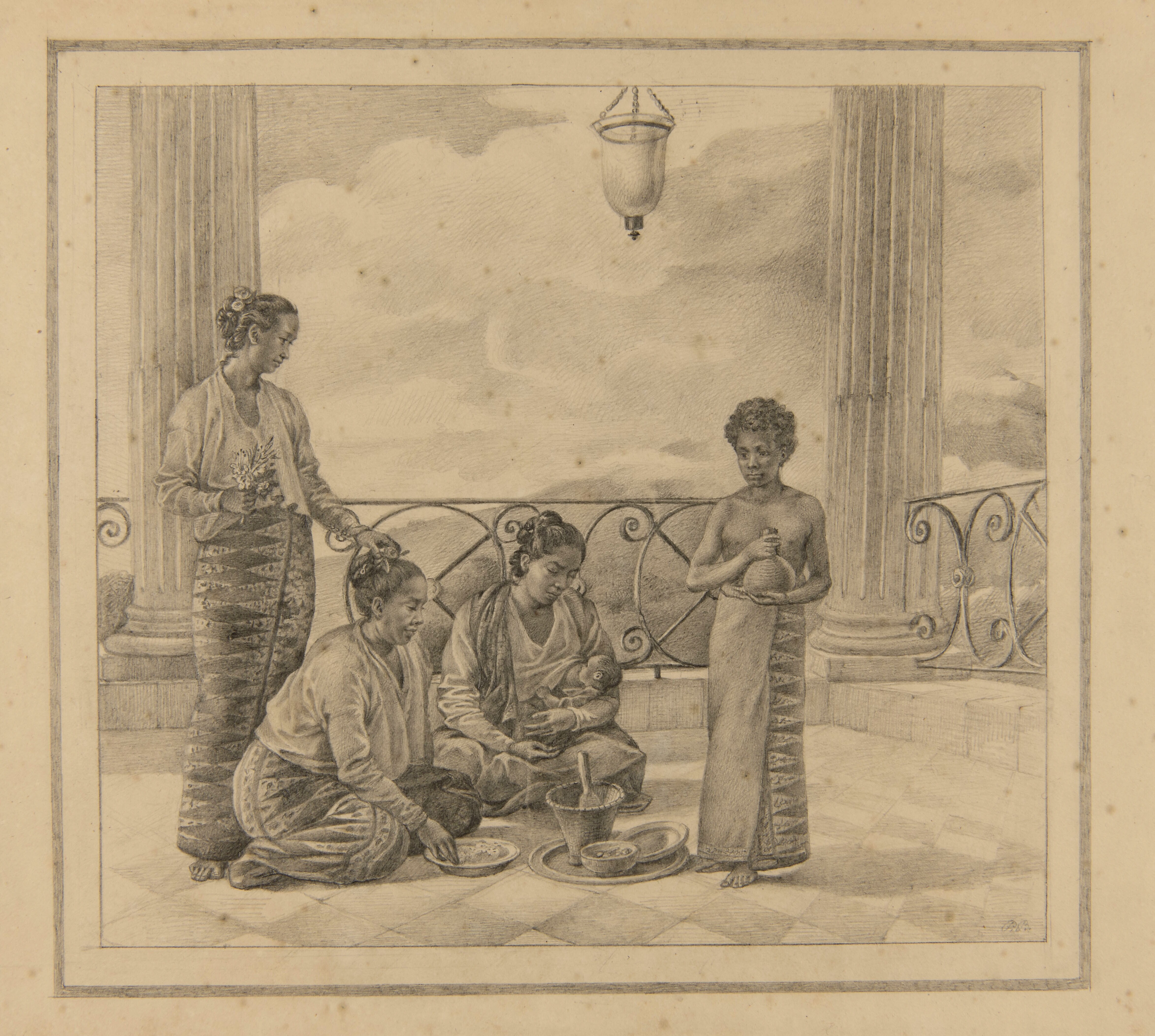 Three women and a boy on a verandah