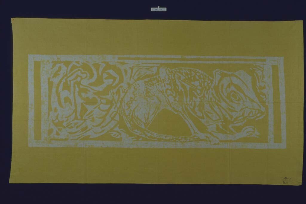 Table-cloth with a batik decoration of a jumping mouse