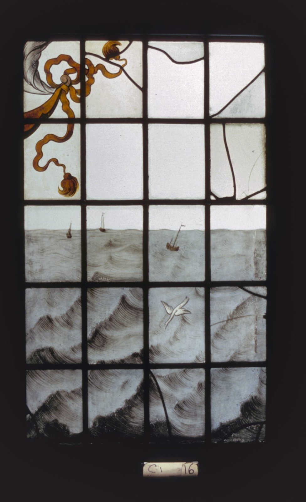 Interieur, gebrandschilderd glas, raam 16: "Uitwater...