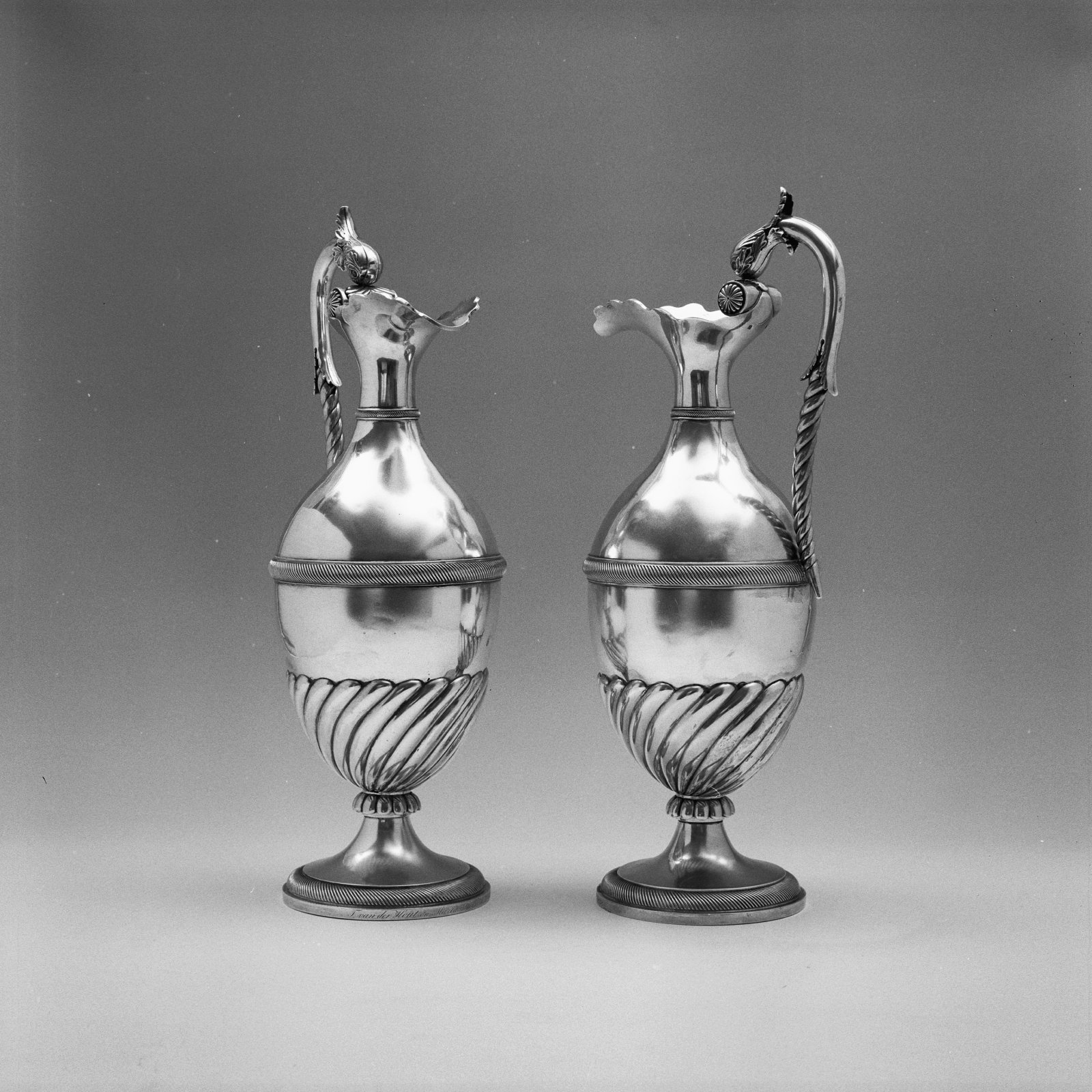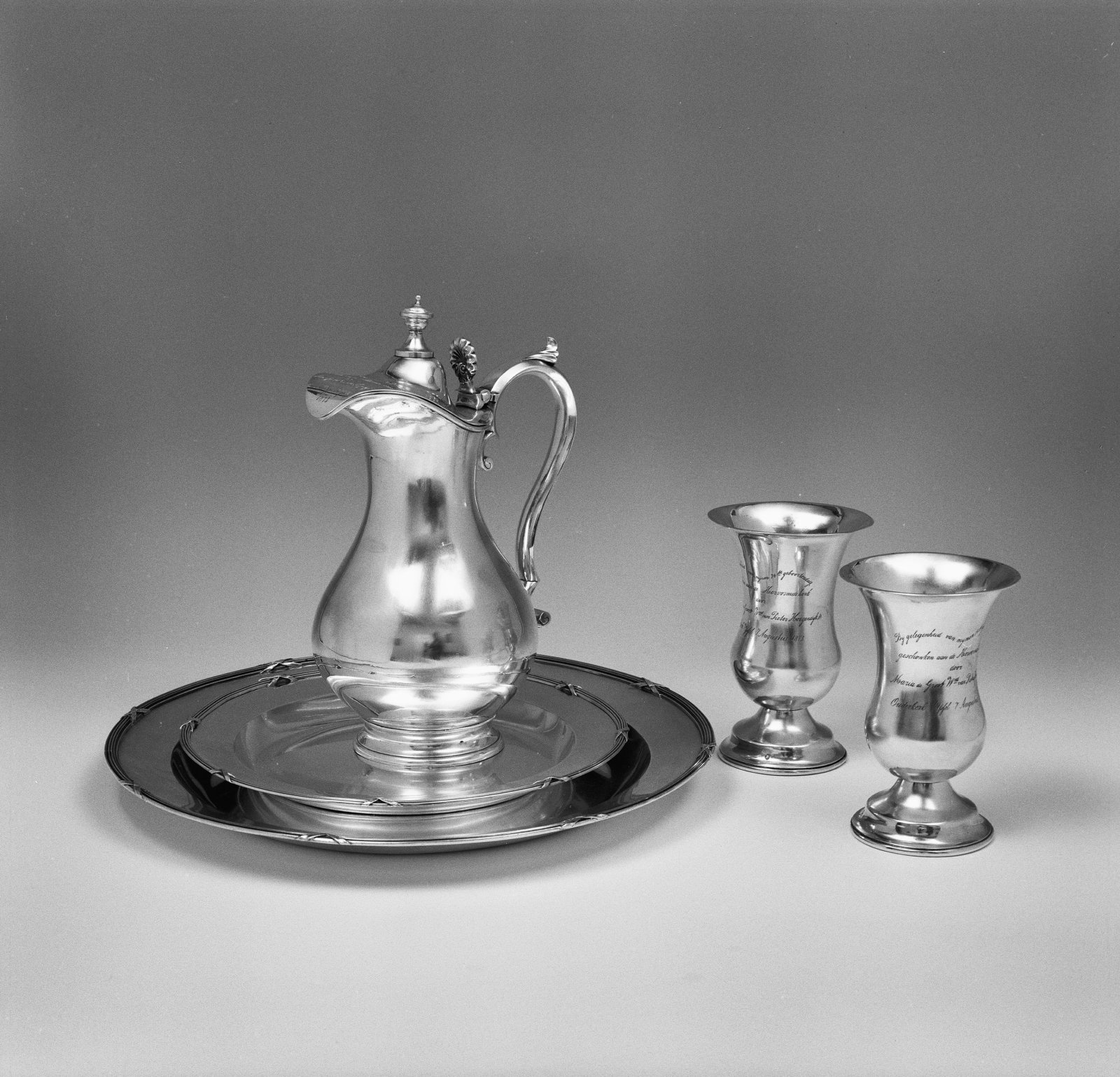 Interieur, twee zilveren avondmaalskannen (1838-1839)