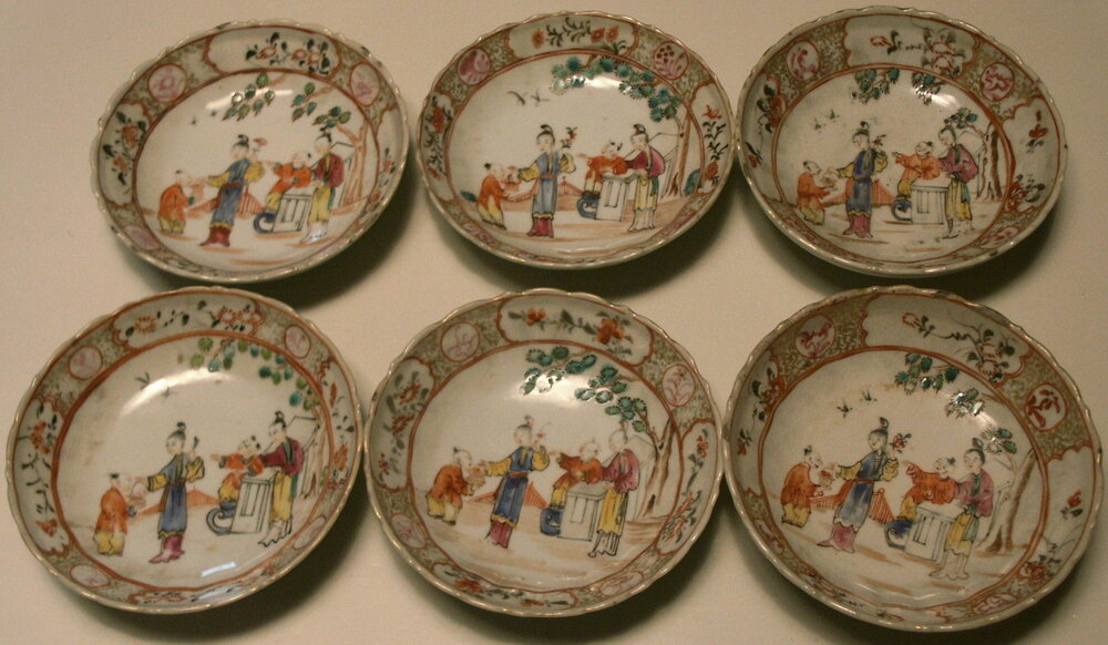 6 Chinees porseleinen schoteltjes met gekartelde rand.