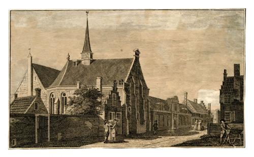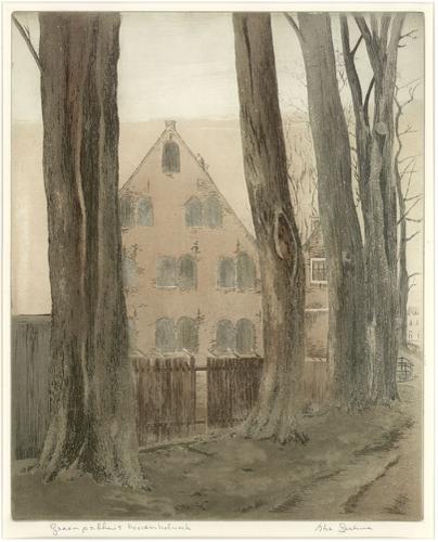 Ets in kleur van het Korendragershuisje in Franeker ...