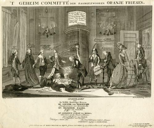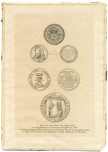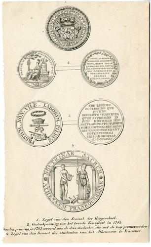 Lithografie met kleur van het Raadhuis in Franeker d...