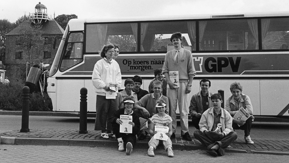 Filmteam 'Rimbaud au Pays-Bas' poseert op binnenplaa...