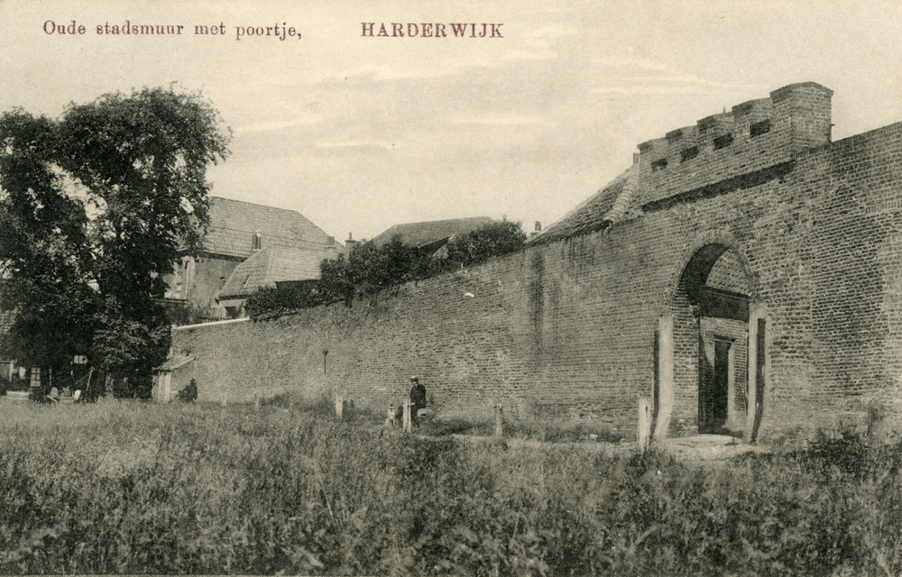 Prentbriefkaart, getiteld 'Oude stadsmuur met poortj...