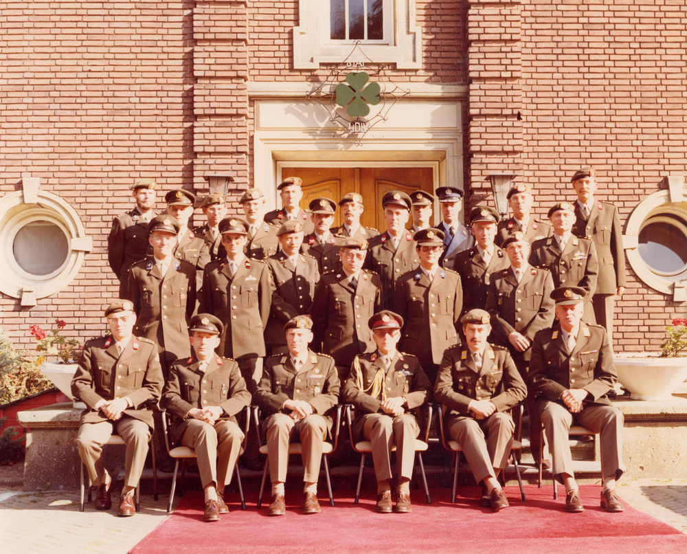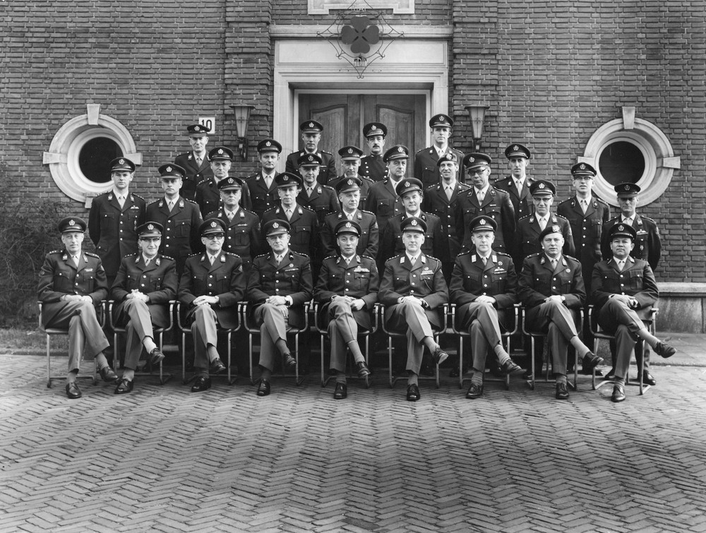 Groepsfoto staf 4 Divisie voor het stafgebouw op de ...