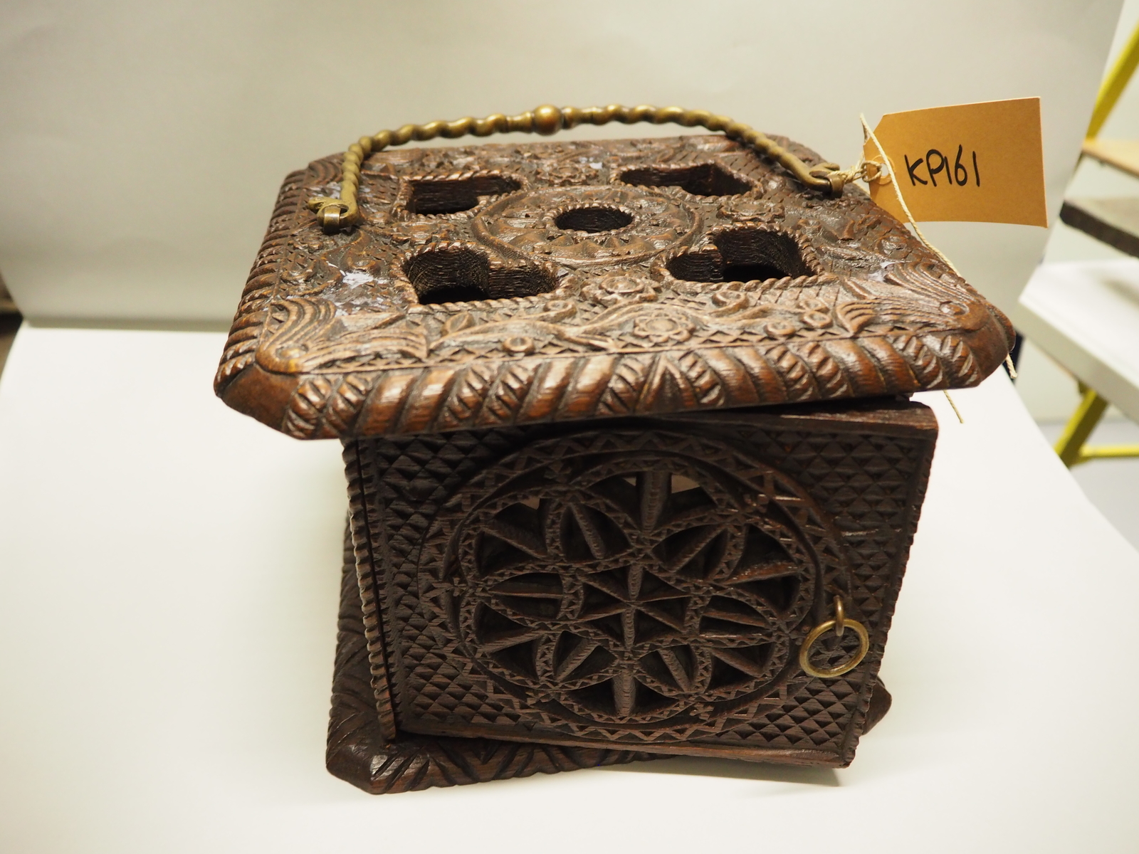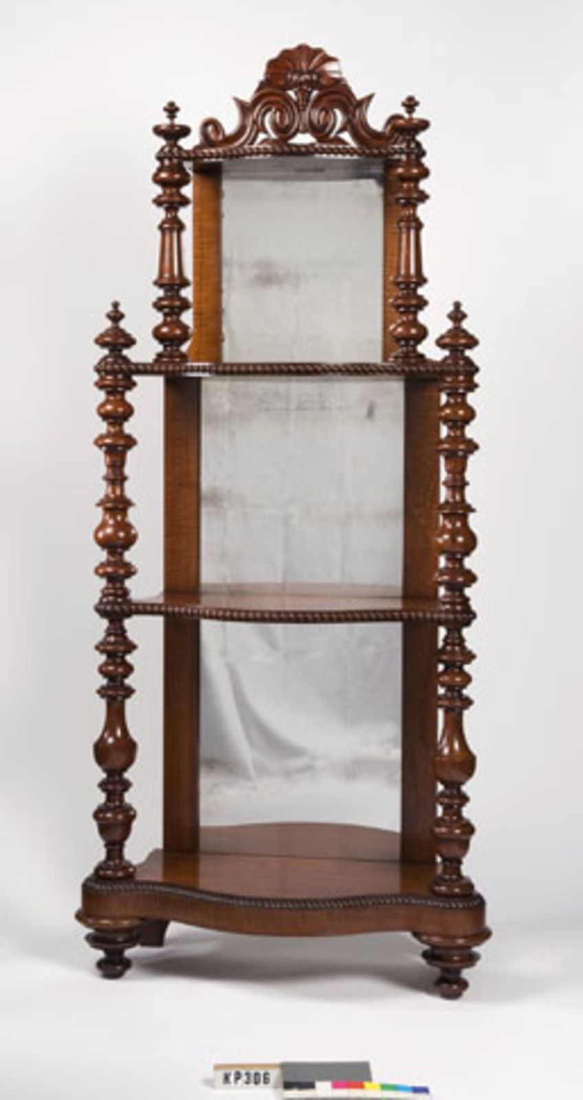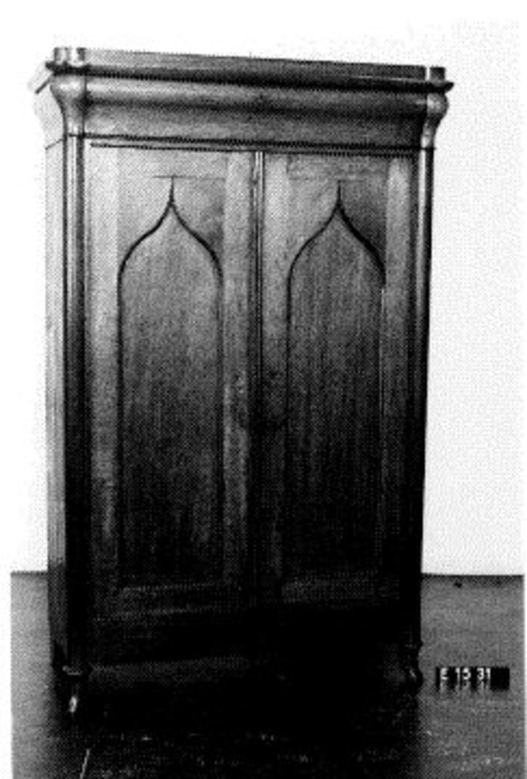 diverse houtsoorten belijmd met padoek- en cederhout, versierd met beschilderde wit marmeren plaquettes (1)