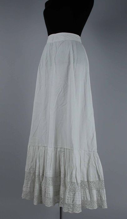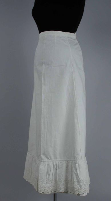 Lange witte onderrok, onderaan met oprijgsels en str...