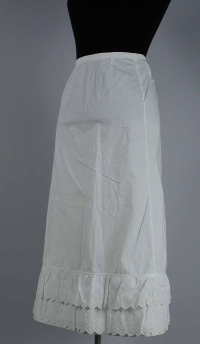 Halflange wijde onderrok van wit katoen, boven de ro...
