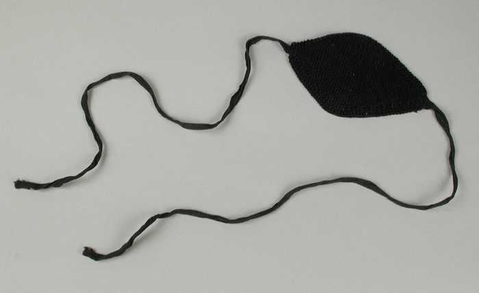 Ruitvormige gebreide ooglap van zwart katoen met lan...
