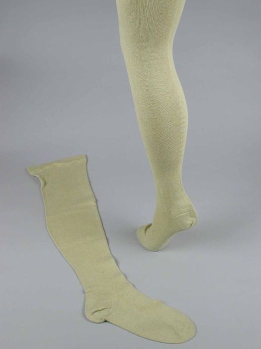 Paar huidskleurige lange kousen van tricot katoen, n...
