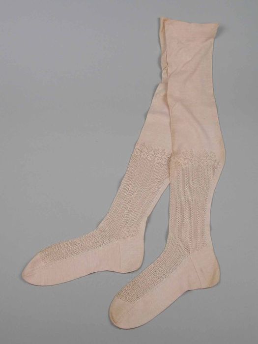 Paar lange roze kousen van fijn tricot katoen met ka...