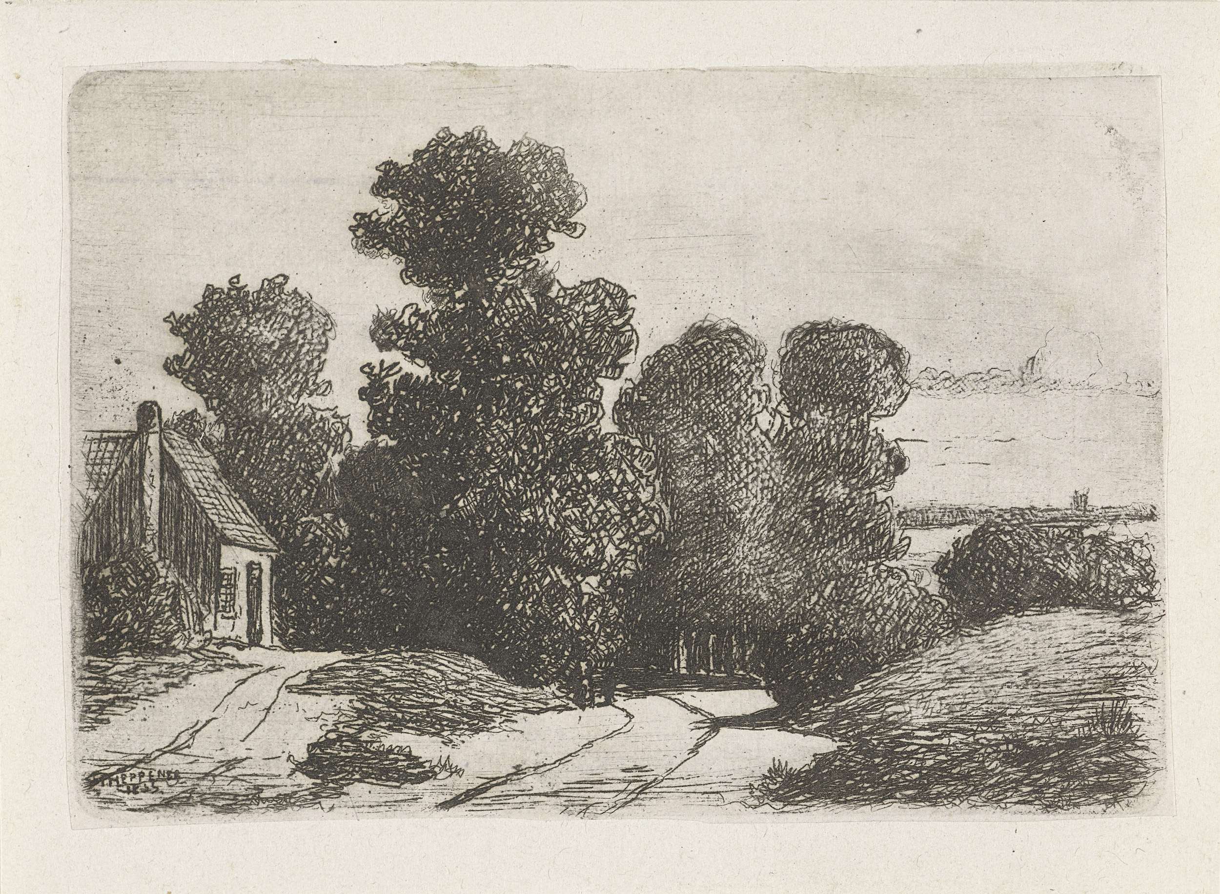 Landschap met links een boerderij