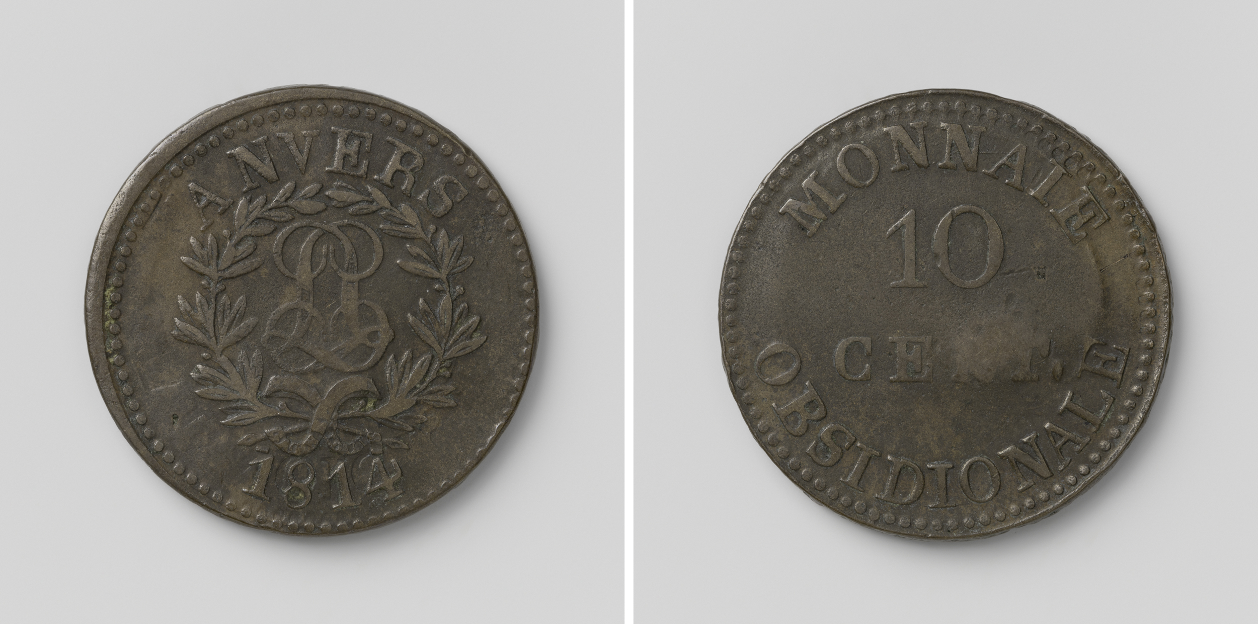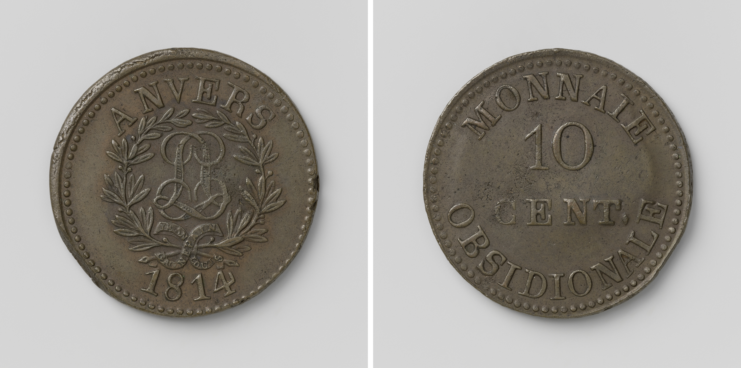 Beleg van Antwerpen, noodmunt van tien cent, geslage...