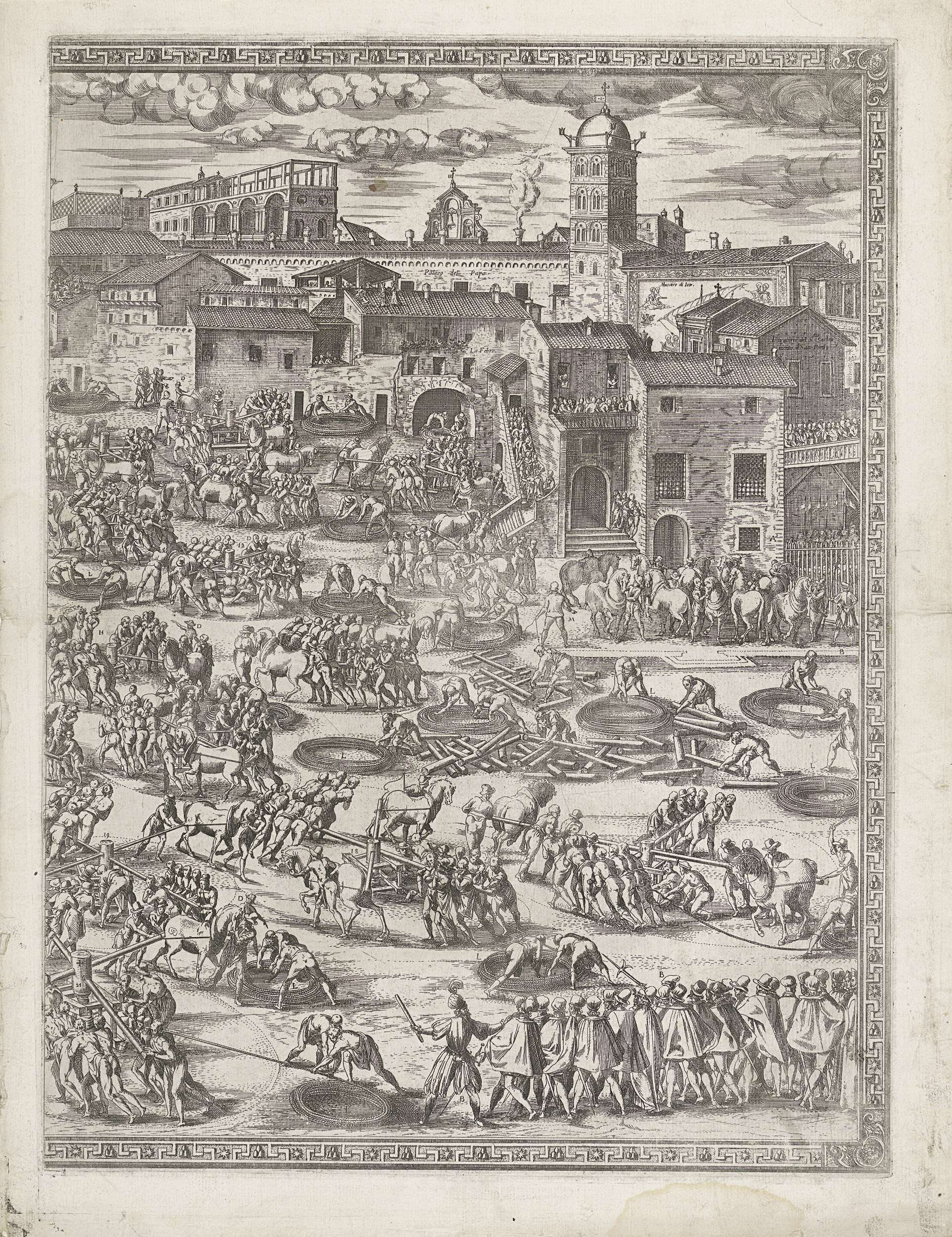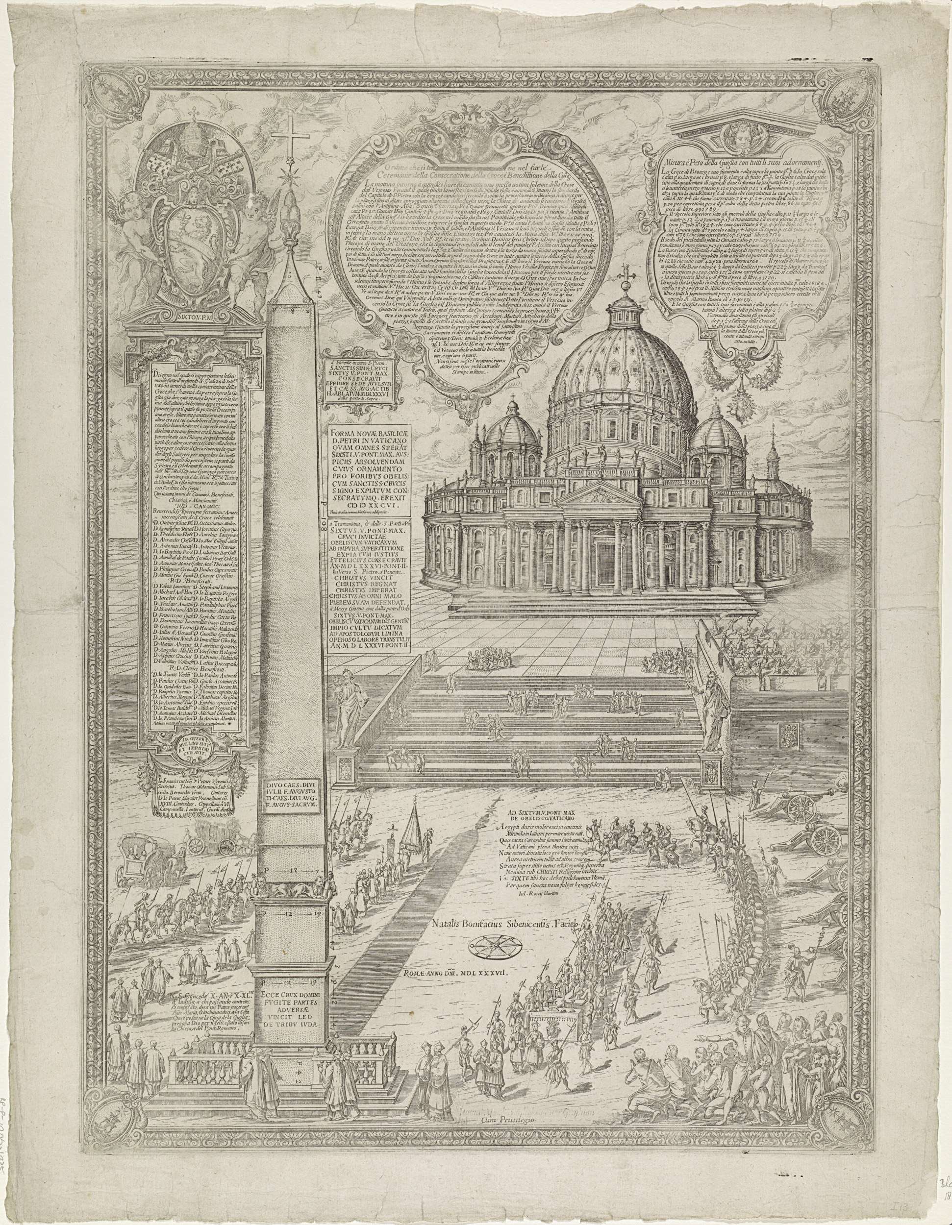 Het oprichten van de obelisk op het St. Pietersplein