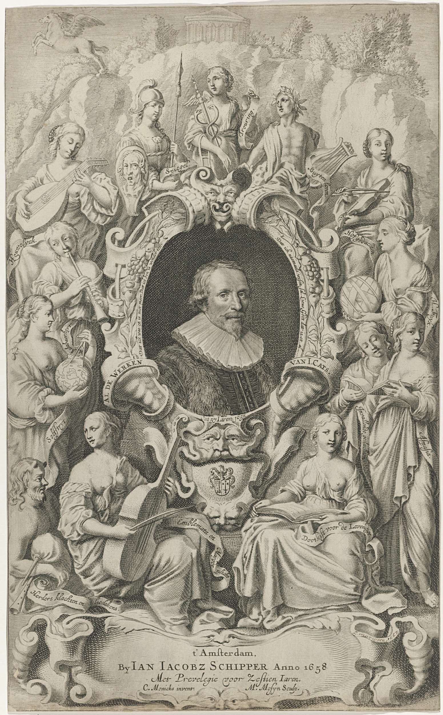 Portret van Jacob Cats omgeven door goden en muzen