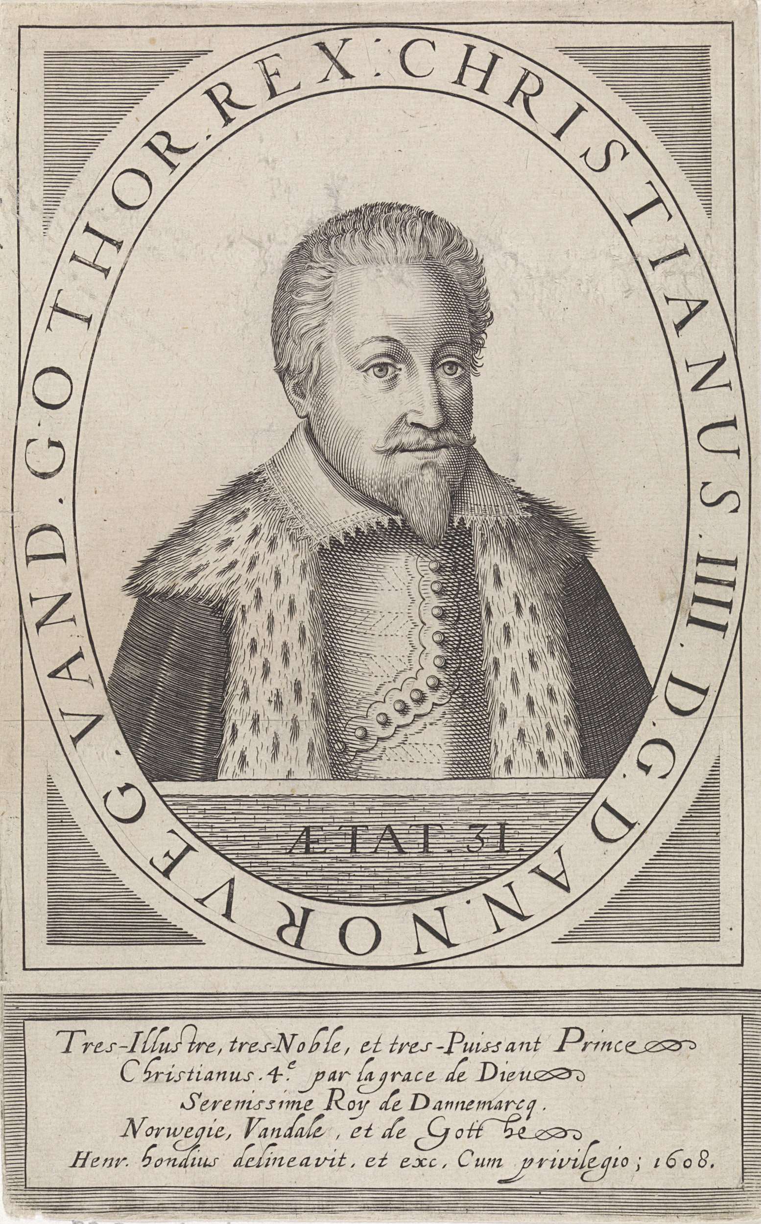 Portret van Christiaan IV, koning van Denemarken en ...