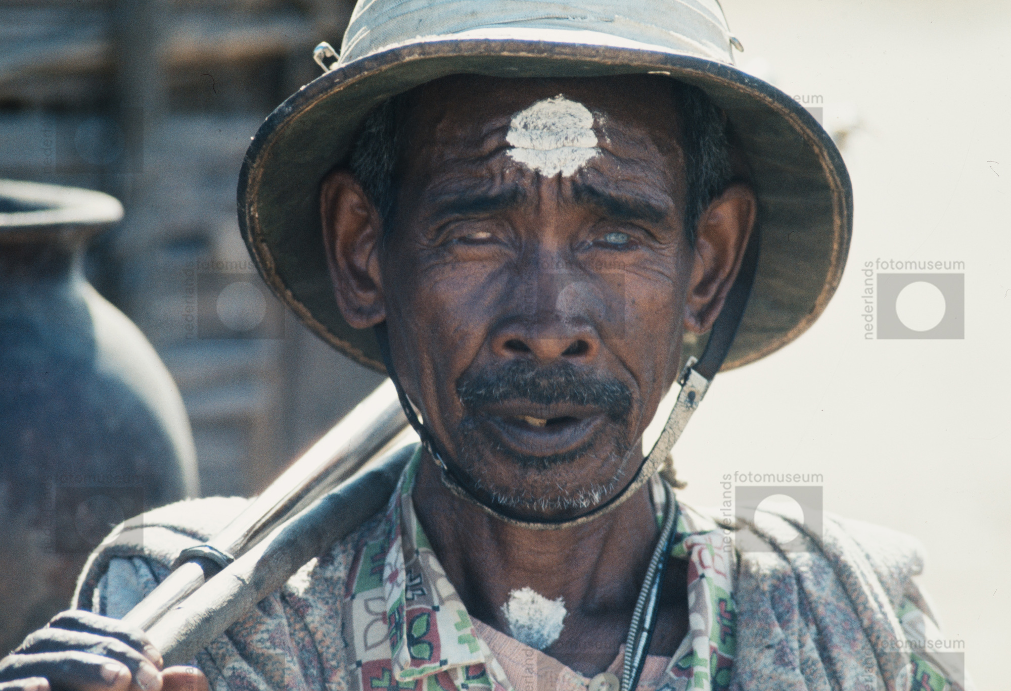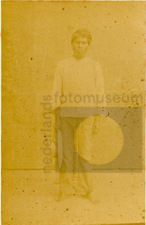 Portret van een betja-bestuurder, terwijl hij op zij...
