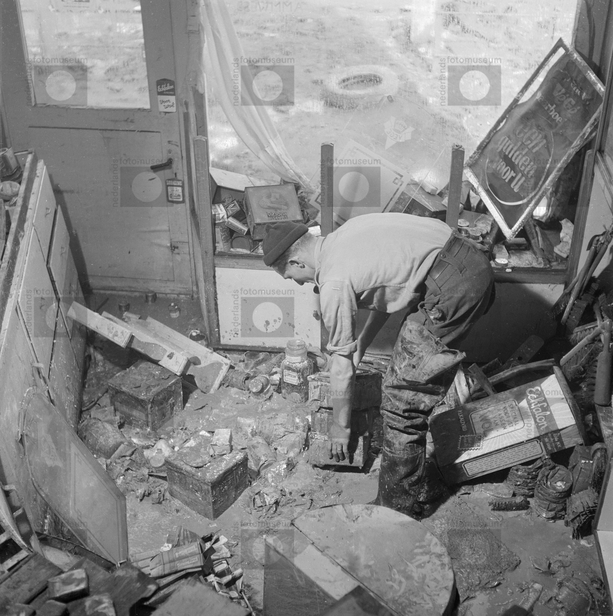 Ravage in gebouw, Watersnoodramp, Moerdijk (1953)
