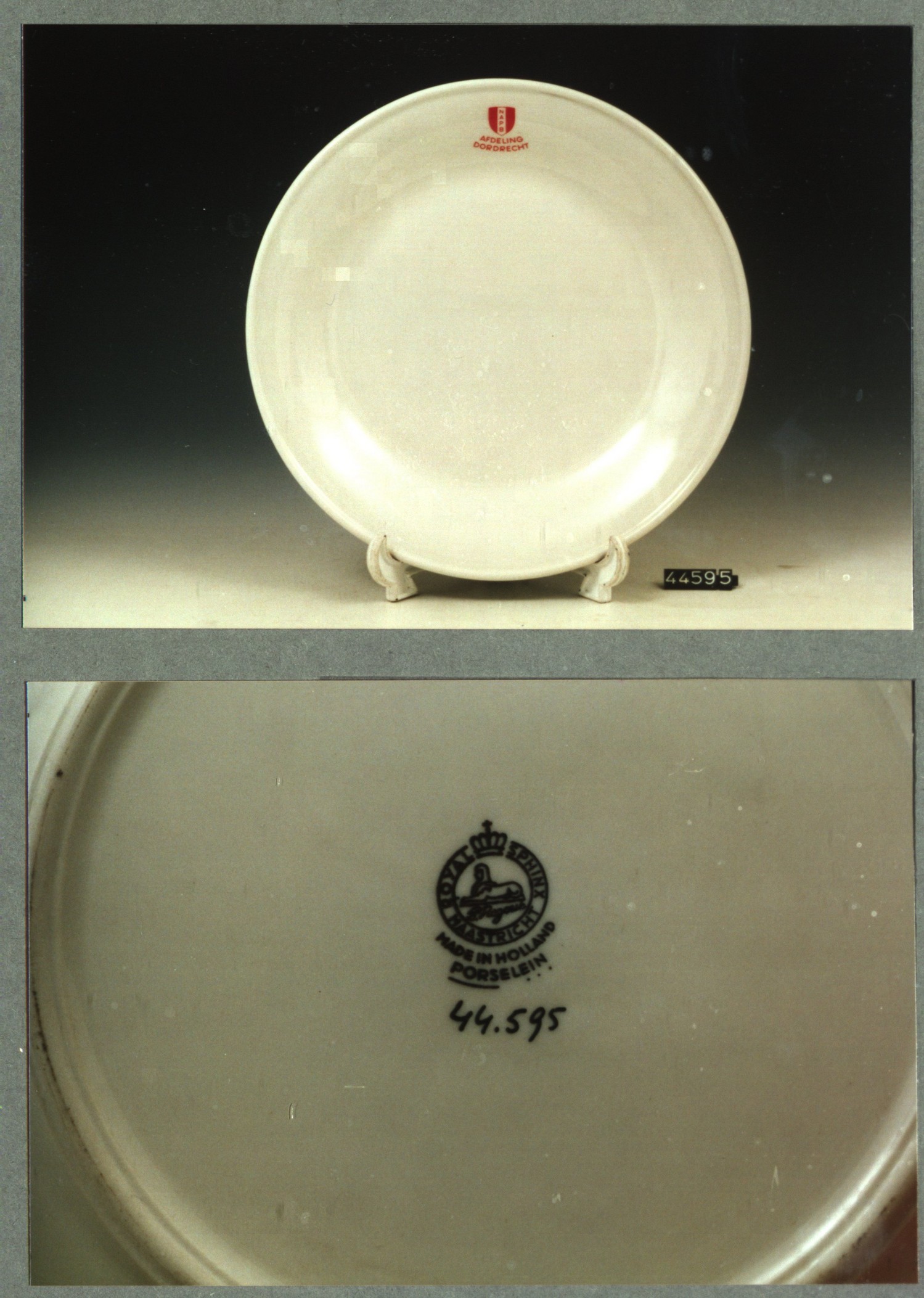 Plat bord, model H met decor NAPB afdeling Dordrecht