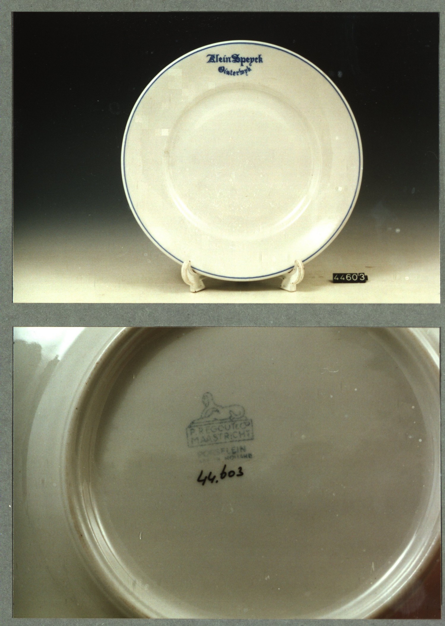 Plat bord, model P met decor Klein Speyck Oisterwijk