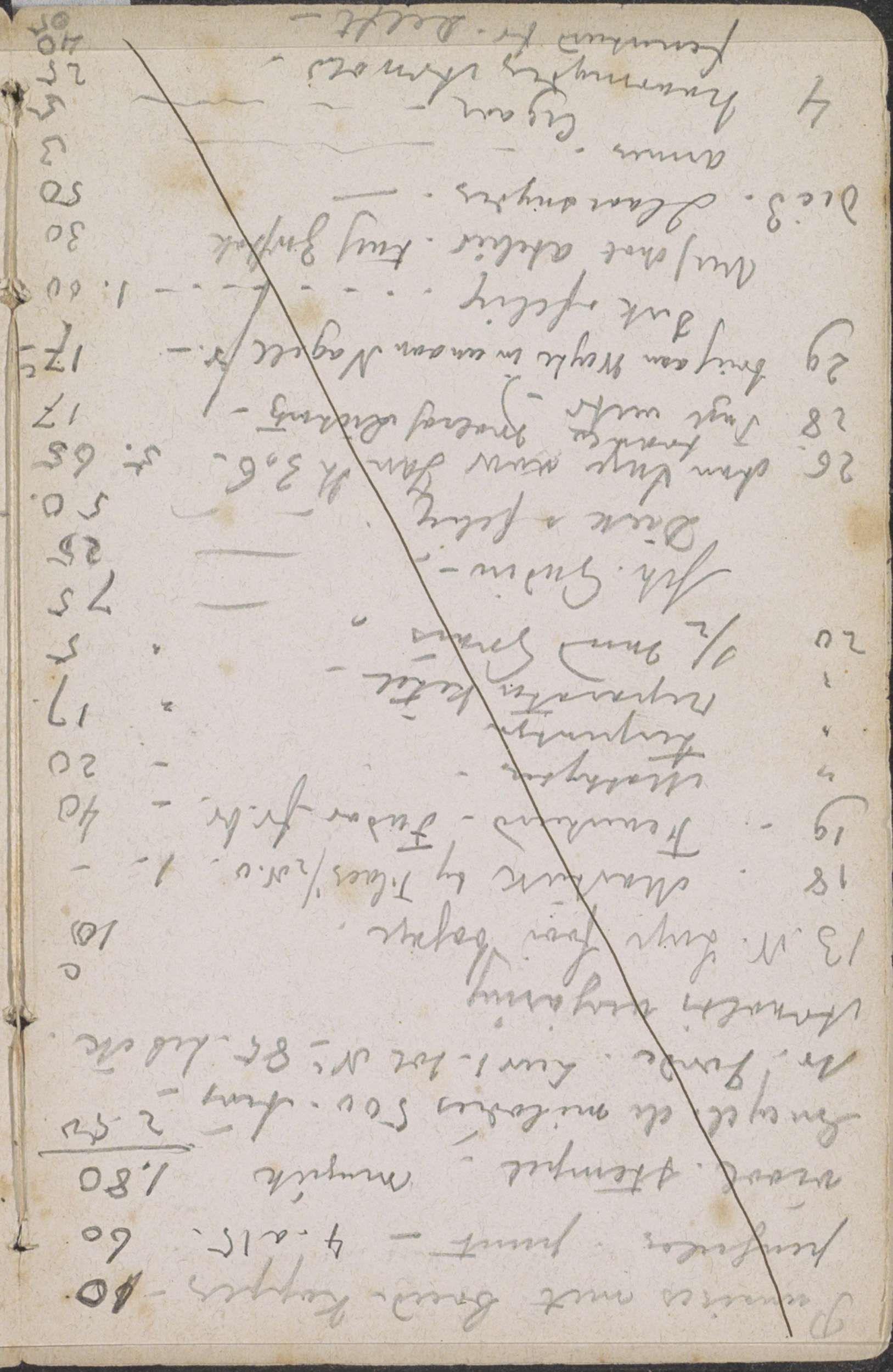 Reisnotities en een lijst met uitgaven