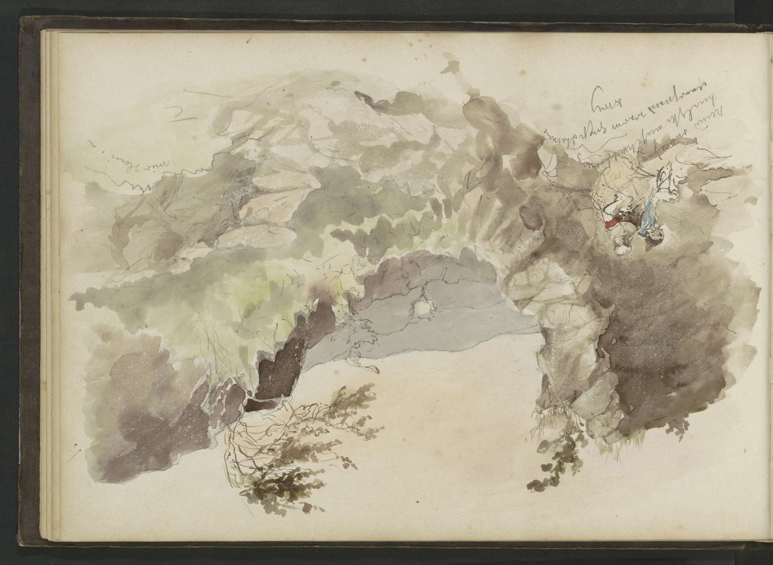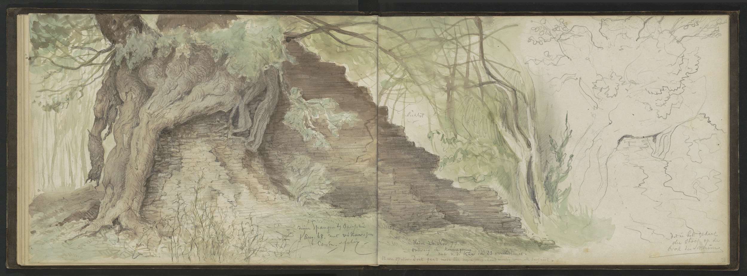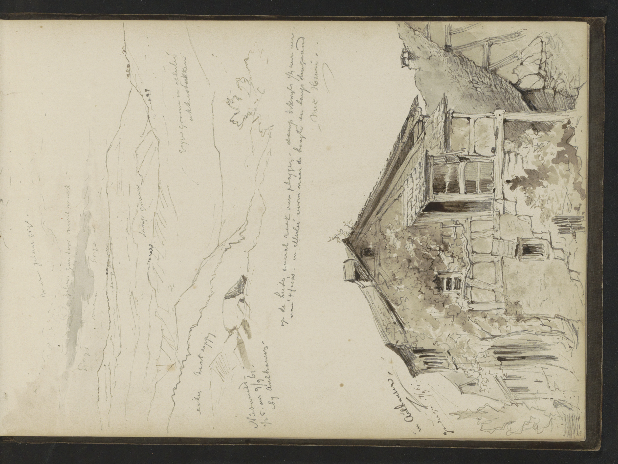 Gezicht op Niederwald en een ruïne van een klooster ...