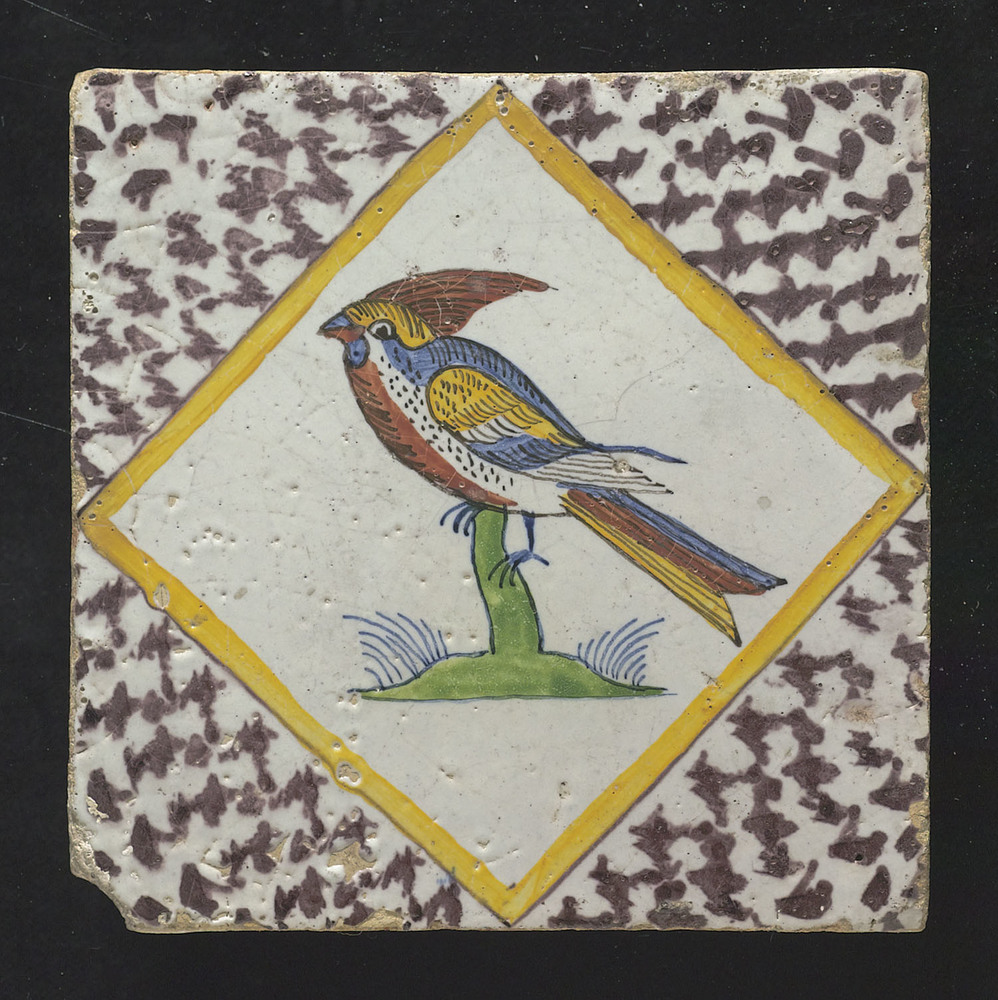 Tegel van keramiek, tinglazuur, voorstellende een bi...