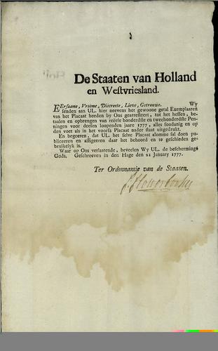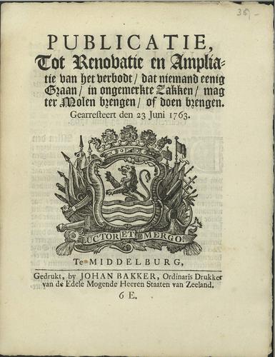 Plakkaat over smokkel van graan, 1763