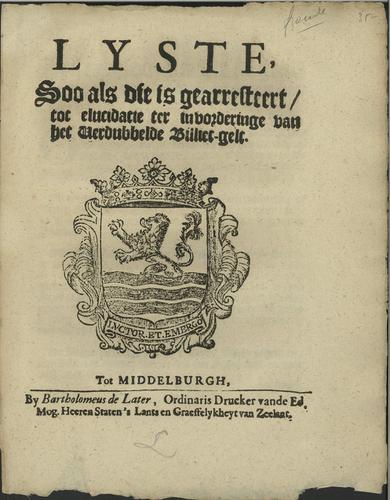 Veilingbiljet verpachting tolrecht Breskens tot Slui...