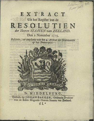 Ordonnantie op het trouwgeld, 1775