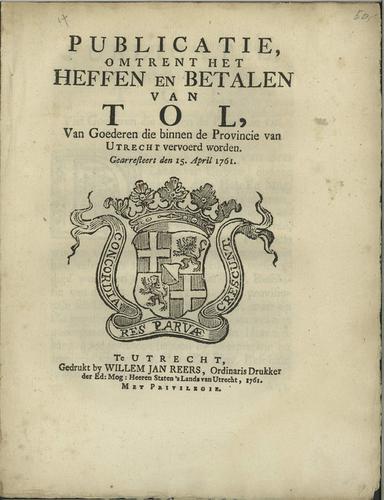 Plakkaat tolheffing provincie Utrecht, 1761