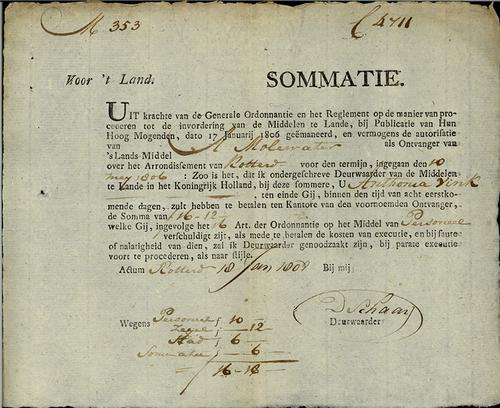 Sommatie, personele belasting, 1808