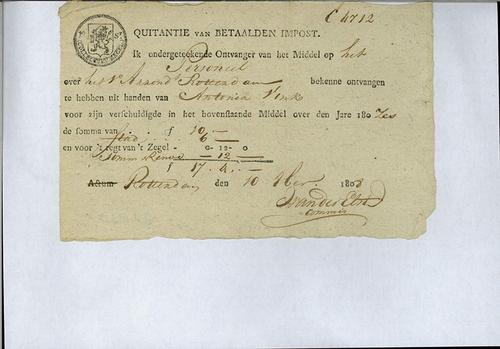 Kwitantie, personele belasting, 1808